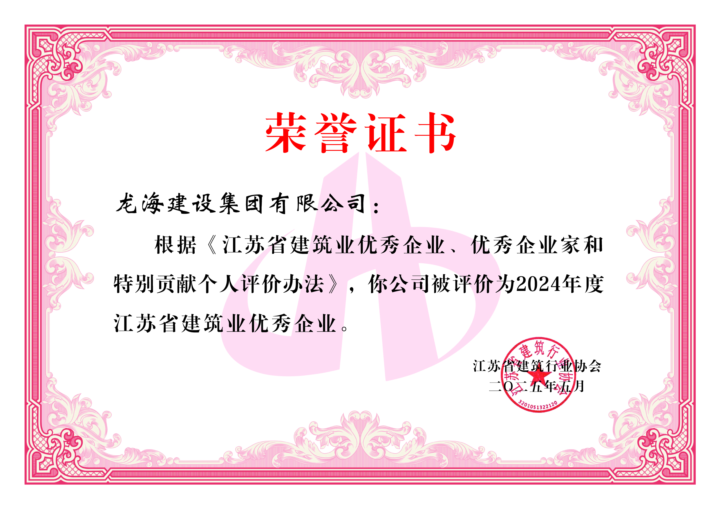 公司榮獲“2024年度江蘇省建筑業(yè)優(yōu)秀企業(yè)” 稱號
